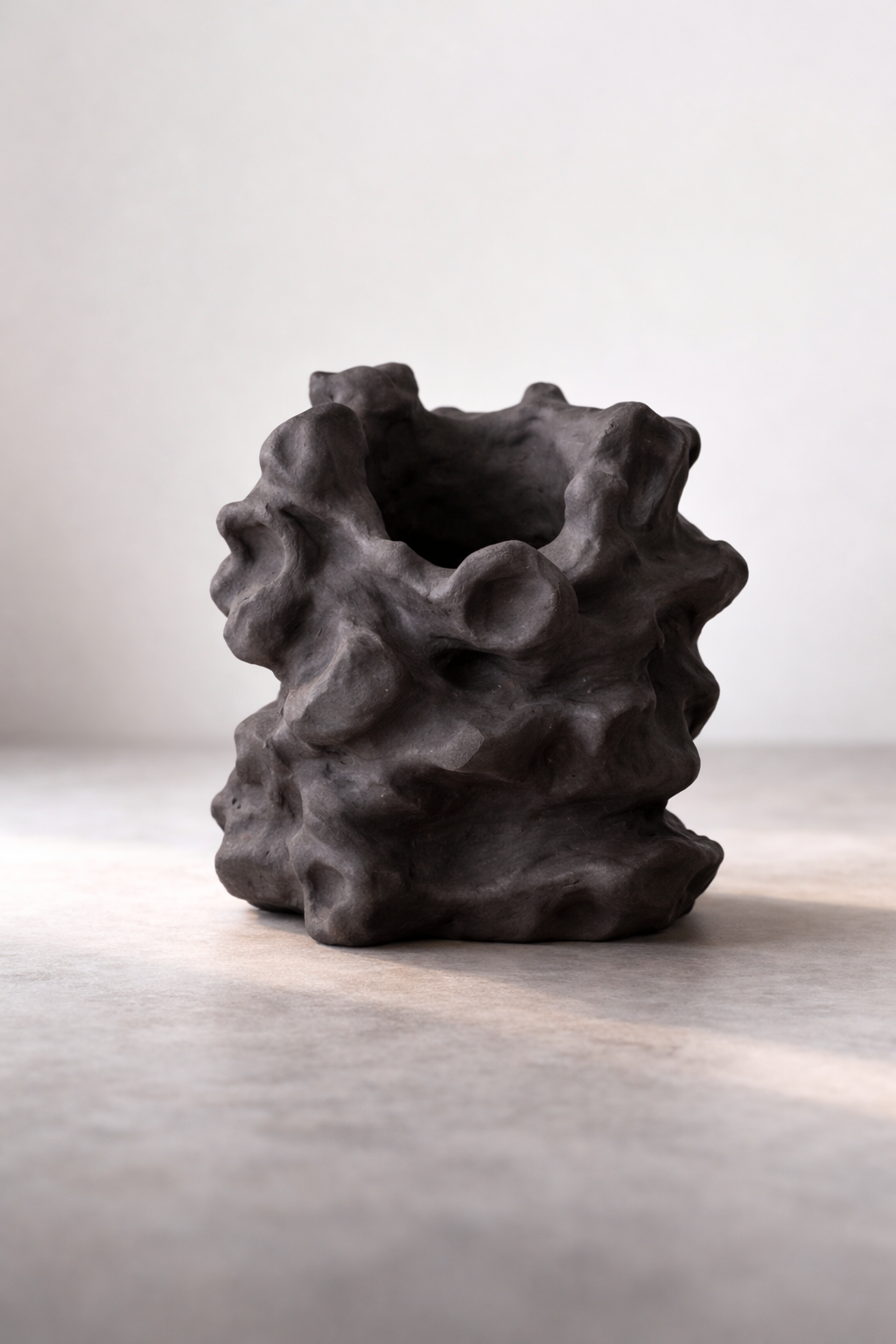 A coleção Amorfa propõe uma investigação sobre o momento anterior à consolidação formal do objeto. Ao rejeitar o molde e a repetição, as peças são desenvolvidas a partir do gesto manual direto, permitindo que a matéria conduza o resultado final.